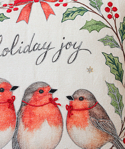 Celebrate the warmth of togetherness with this charming trio of birds perched beneath festive holly.