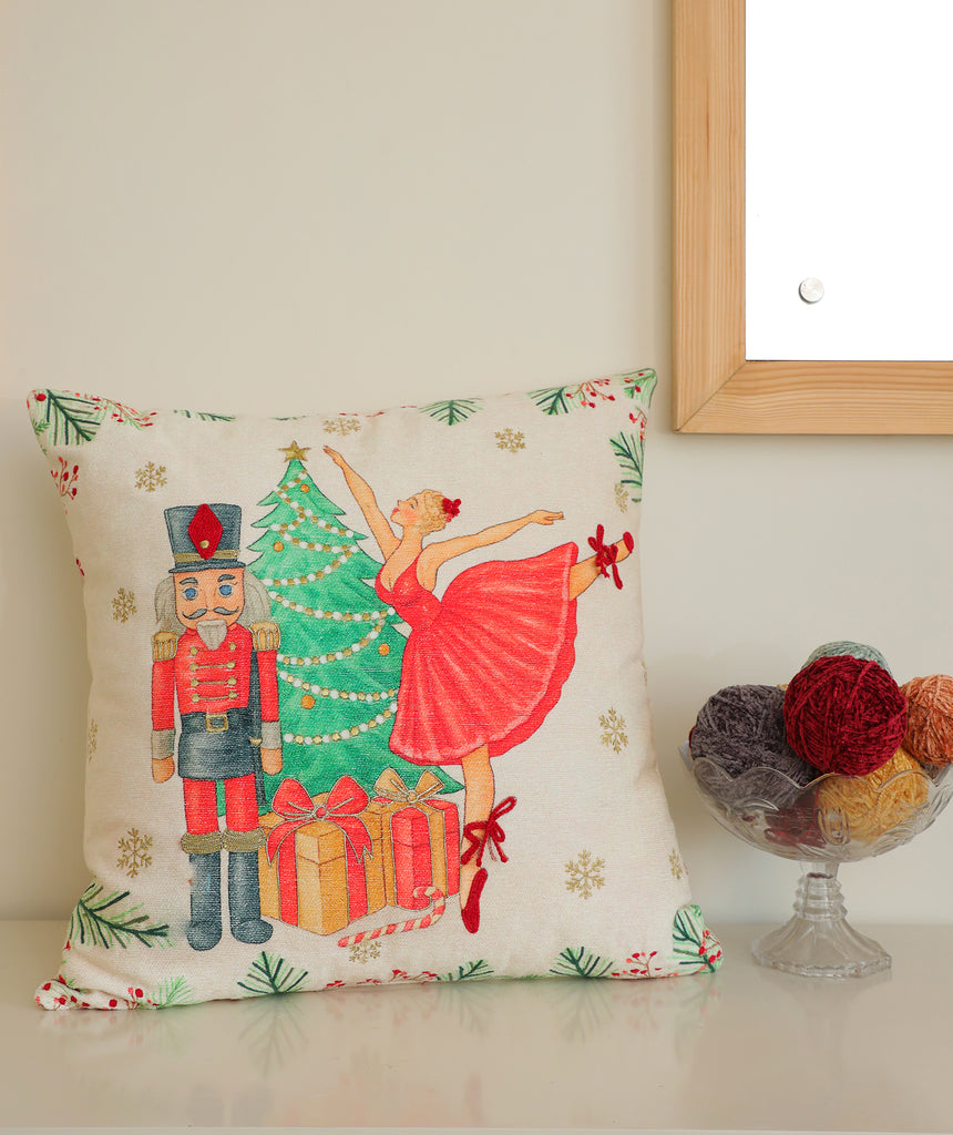 Let the magic of the Nutcracker Ballet pirouette into your holiday décor. This beautifully embroidered pillow captures the grace of the ballerina, the charm of the nutcracker, and the sparkle of the season—perfect for creating a fairytale Christmas setting.