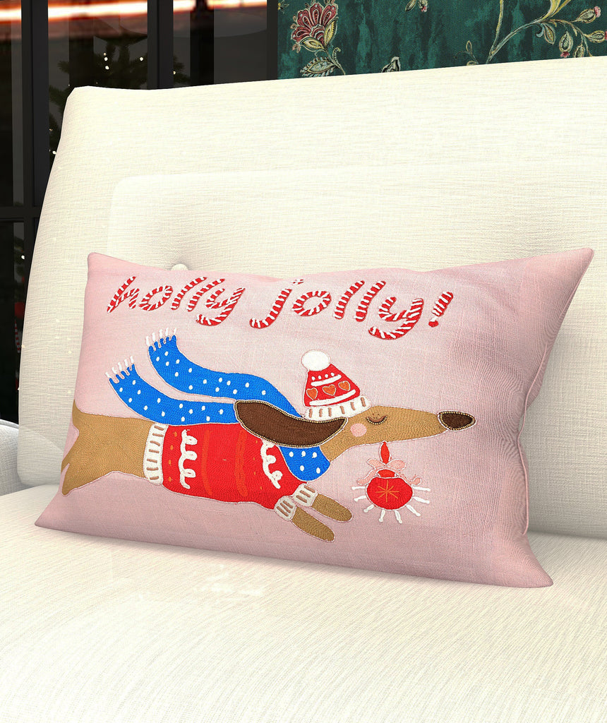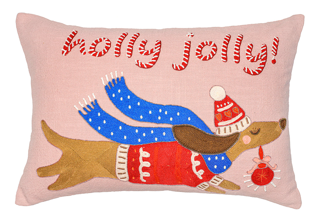 Holly Jolly Dog Christmas Pillow 14" x 20"